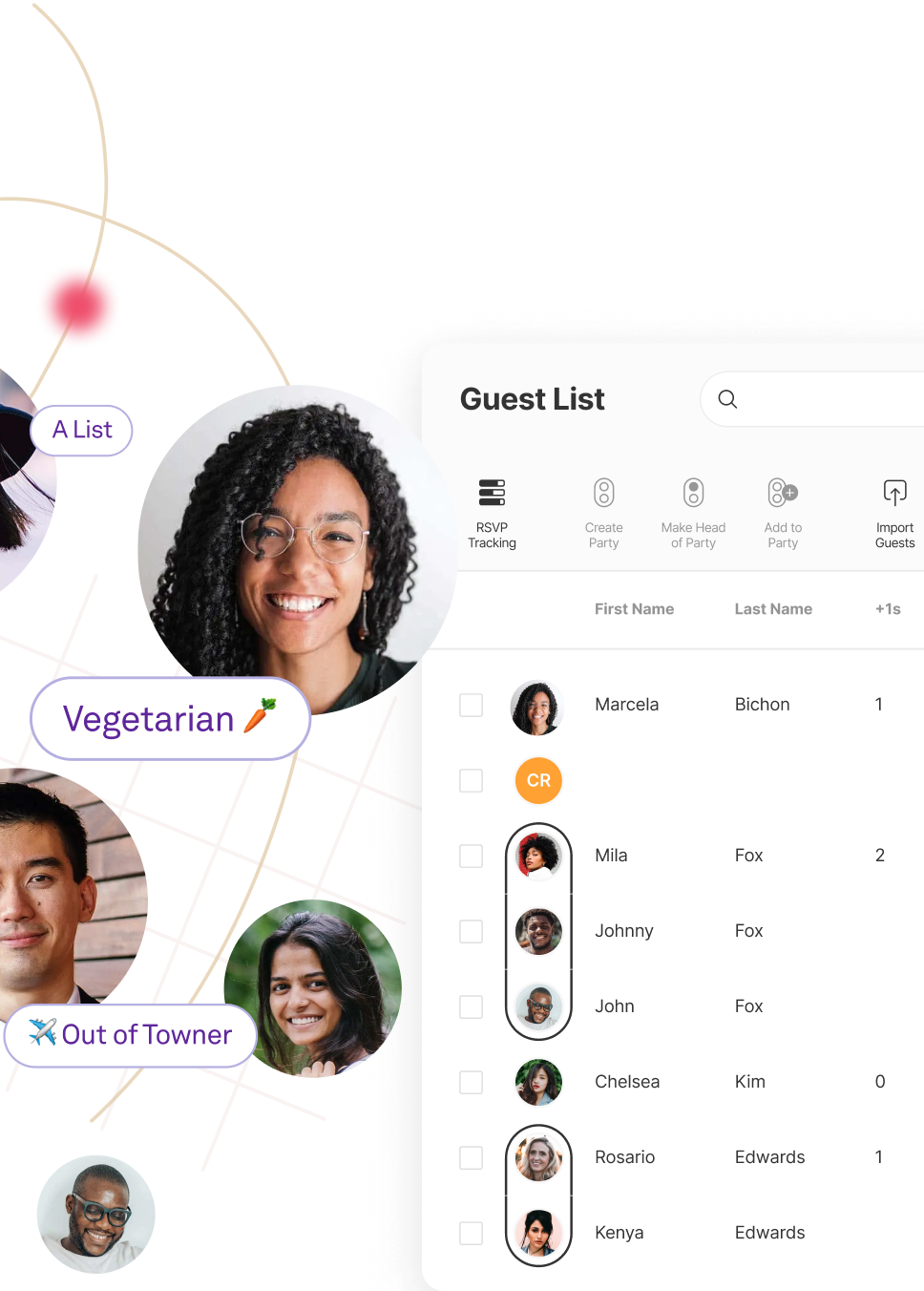 Assign plus ones, allow guests to RSVP for their households, and more, with the guest list that keeps all your plans streamlined.