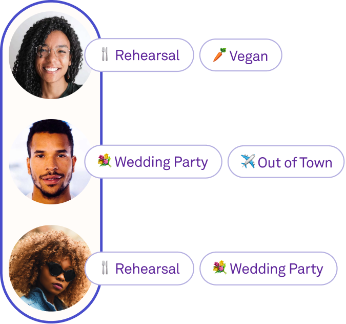 Assign plus ones, group families and dates together, and organize guests with tags.